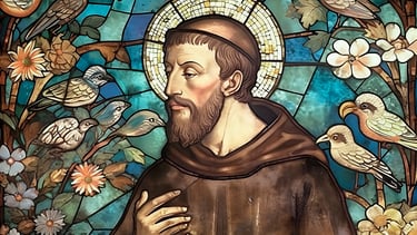 Saint Francis of Assisi renounced wealth, embraced poverty, founded the Franciscans, and preached peace, humility, and love.